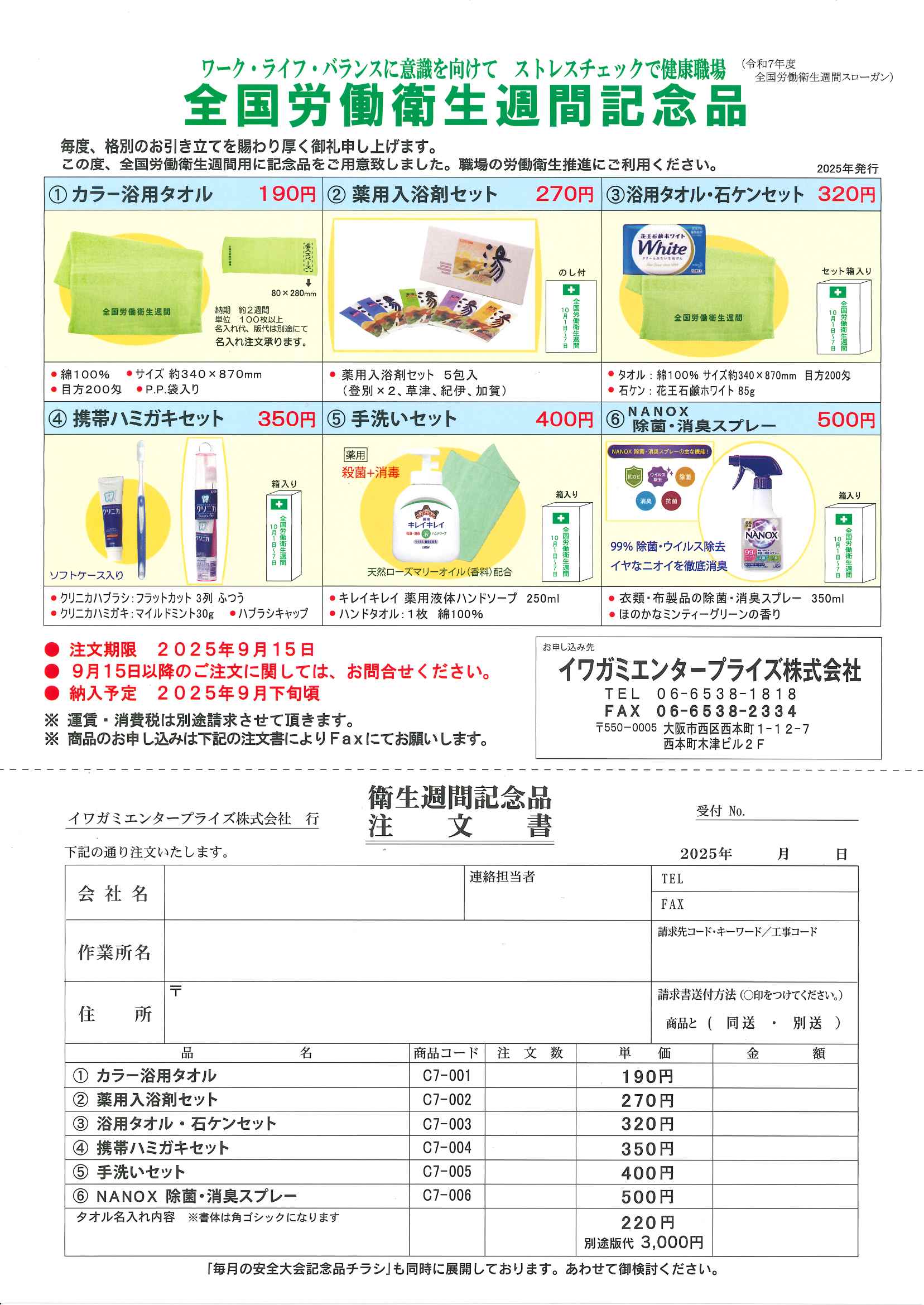 熱中症予防用品や寒さ対策用品など皆さまの安全をサポート