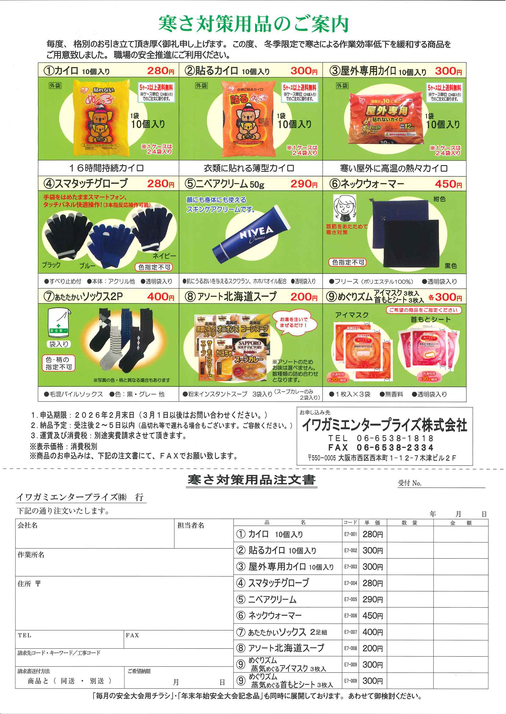 熱中症予防用品や寒さ対策用品など皆さまの安全をサポート